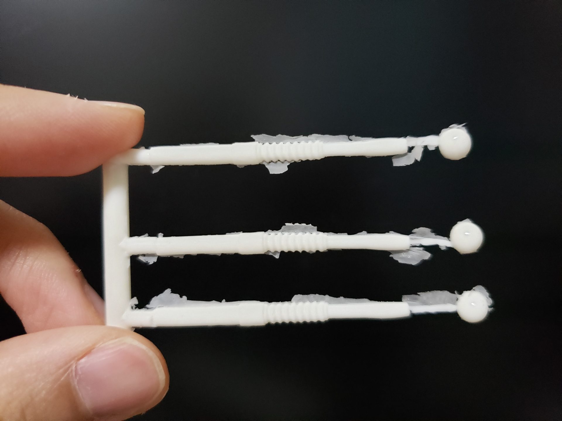 上にまとめた写真は4回くらいレジンを流して型の湯口を調整したものです。一回目の複製では大きい気泡が出来たりしました。
